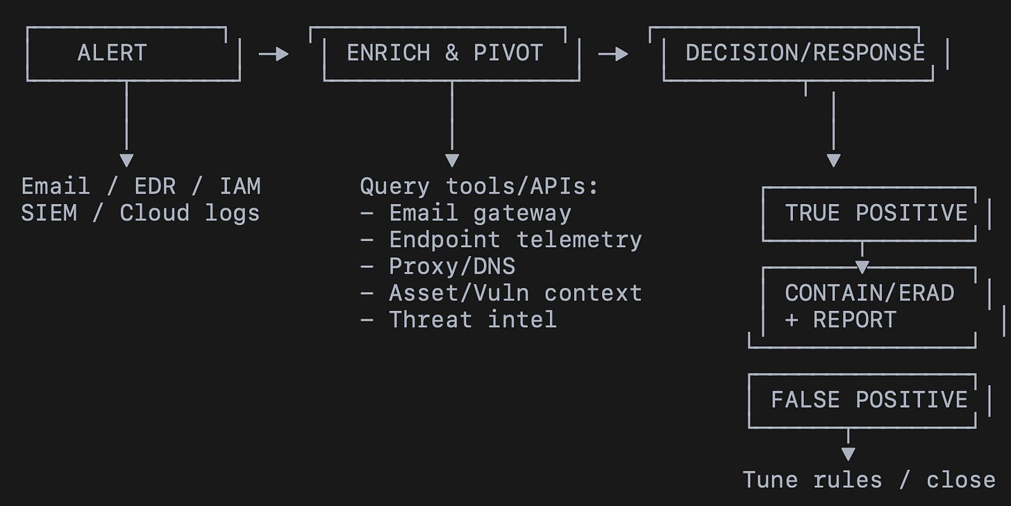 What has changed is scale, speed, and fragmentation. Modern enterprises operate dozens of security tools across email, endpoints, identity systems, cloud infrastructure, and web gateways. Historically, analysts manually logged into multiple consoles, ran queries, copied outputs into spreadsheets, and stitched together investigations. Integrations were brittle. APIs were inconsistent. Runbooks were manual.